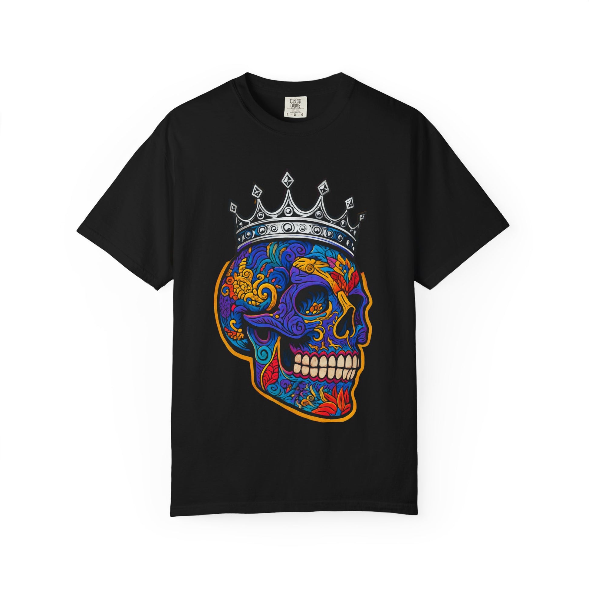Vibrant Skull Crown T-shirt, Unisex Gift, Festival Wear, Artistic Tee, Casual Style, Unique Graphic Shirt
